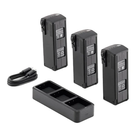 DJI Mavic 3 Enterprise Series Battery Kit zawiera trzy akumulatory drona oraz jeden Hub ładowania (100W), aby sprostać potrzebom długotrwałych operacji.