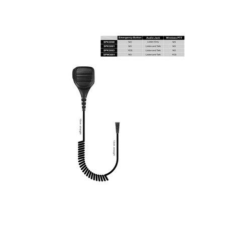 VOXTECH SPK3000 - profesjonalny mikrofonogłośnik do radiotelefonu ręcznego.Funkcja nadawania i odsłuchu w kompaktowej obudowie. Wyposażony w gniazdo słuchawkowe 3,5 mm. Przewód wzmocniony kewlarem.M4 - złącze multi-pin / standard MOTOROLA Pracuje z radiotelefonami: MOTOROLA GP340, GP360, GP380, GP640. GP680 ...