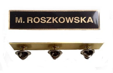 - Identyfikatory dla PSP -czcionka złota,ramka identyfikatora złota.Wykonywany jest według zasady:pierwsza litera imienia oraz pełne nazwisko.