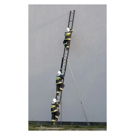 Ratownicza drabina dwuprzęsłowa, trzyosobowa wykonana jest ze stopów aluminium.