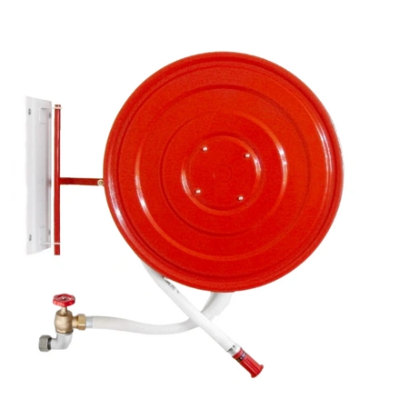 - zwijadło węża w kolorze RAL 3000 z osią wodną mosiężną i regulatorem siły rozwijania