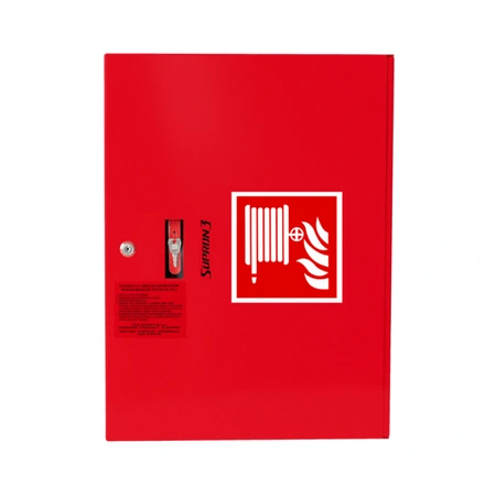 - szafka hydrantowa STANDARD wykonana z blachy czarnej malowanej w kolorze czerwonym (RAL 3000) lub białym (RAL 9003), drzwi pełne; dzięki zastosowaniu zawiasu krytego drzwi szafki można otworzyć o 180º
