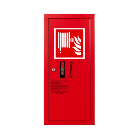 - szafka hydrantowa STANDARD wykonana z blachy czarnej malowanej w kolorze czerwonym (RAL 3000) lub białym (RAL 9003), drzwi pełne; dzięki zastosowaniu zawiasu krytego drzwi szafki można otworzyć o 180º