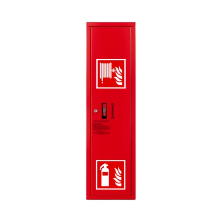 - szafka hydrantowa STANDARD wykonana z blachy czarnej malowanej w kolorze czerwonym (RAL 3000) lub białym (RAL 9003), drzwi pełne; dzięki zastosowaniu zawiasu krytego drzwi szafki można otworzyć o 180º