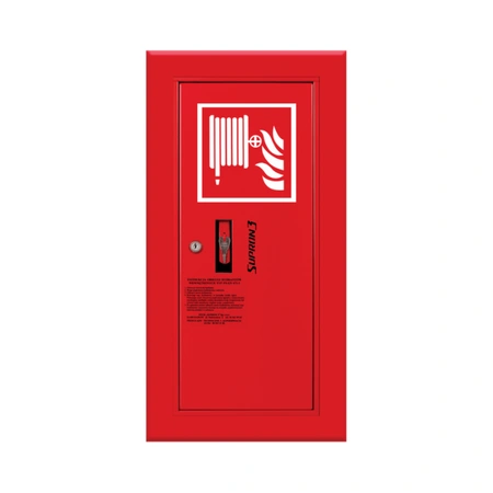 - szafka hydrantowa STANDARD wykonana z blachy czarnej malowanej w kolorze czerwonym (RAL 3000) lub białym (RAL 9003), drzwi pełne; dzięki zastosowaniu zawiasu krytego drzwi szafki można otworzyć o 180º