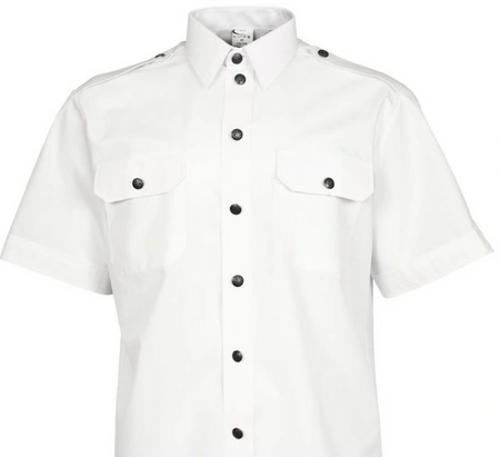 Koszula wyjściowa z krótkim rękawem w kolorze białym z metalowymi, oksydowanymi guzikami. Koszula posiada dwie kieszenie z przodu z patkami oraz na ramionach białe pagony zapinane na guziki. Przy zamawianiu koszul niezbędne wymiary to: wzrost i rozmiar kołnierzyka. Do koszuli można zakupić dodatkowe elementy: sznur, pochewki, dystynkcje, krawat