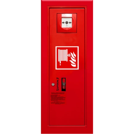 - Hydrant wewnętrzny wnękowy z wężem półsztywnym φ25mm wykonanie boczne z miejscem na ręczny ostrzegacz pożarowy ROP. Otwory przyłączeniowe są zaślepione i umożliwiają podłączenie do instalacji zasilającej 1” i 2”. Ciśnienie pracy od 0,2 do 1,2 MPa.