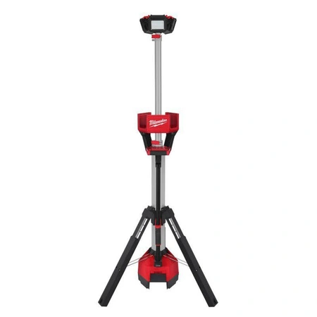 Lampa stojąca Milwaukee M18 HOSALC-0 to mocne oświetlenie warsztatowe i terenowe z technologią TRUEVIEW™, oferujące strumień świetlny o mocy do 6000 lumenów. Urządzenie posiada trzy tryby świecenia – niski, średni i wysoki – oraz trzy regulowane głowice LED, które można obracać w pionie i poziomie w celu precyzyjnego oświetlenia przestrzeni pracy. Teleskopowy maszt pozwala na regulację wysokości od ok. 1 m do ponad 2,2 m, co umożliwia oświetlenie obszaru z góry bez rzucania cienia. Lampa pracuje zarówno zasilana akumulatorami systemu Milwaukee M18™, jak i z sieci AC/DC, a wbudowana ładowarka M18™ z portem USB 2,1 A umożliwia ładowanie akumulatorów oraz urządzeń mobilnych podczas pracy. Urządzenie charakteryzuje się klasą ochrony IP34 – odporność na kurz i rozbryzgi wody – oraz odporną konstrukcją z wytrzymałymi nóżkami i mocną podstawą, co zapewnia stabilność i trwałość w trudnych warunkach pracy. Czas pracy na akumulatorze M18™ REDLITHIUM™ 8,0 Ah może wynosić nawet do około 10 godzin.