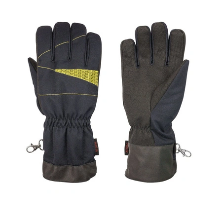Czterowarstwowe rękawice strażackie ze ściągaczem, w których podstawową warstwę ochronną stanowi bardzo odporny materiał Kermel, zwiększający ochronę przed zagrożeniami mechanicznymi oraz cieplnymi. Część chwytna wykonana została z Kevlaru pokrytego warstwą sylikonu, zapewniającego odporność na ciepło, ścieranie i przecięcie. Kevlar® dzięki swojej elastyczności zapewnia dobre czucie i komfort podczas pracy. System specjalnych wzmocnień stanowi niezwykłą ochronę stawów palców. Rękawica posiada wodoszczelną, paroprzepuszczalną membranę Porelle® nieprzepuszczającą cieczy, krwi, bakterii oraz substancji chemicznych. Kolejne warstwy z Kevlaru® i Nomexu® zwiększają odporność na temperaturę, ścieranie oraz cięcie. Bezpośrednią ochronę rąk zapewnia ostatnia warstwa – podszewka aramidowa o zwiększonej gramaturze, która gwarantuje komfort podczas zakładania oraz zdejmowania rękawic nawet gdy są mokre. Mankiet wykonany z Kevlaru®.