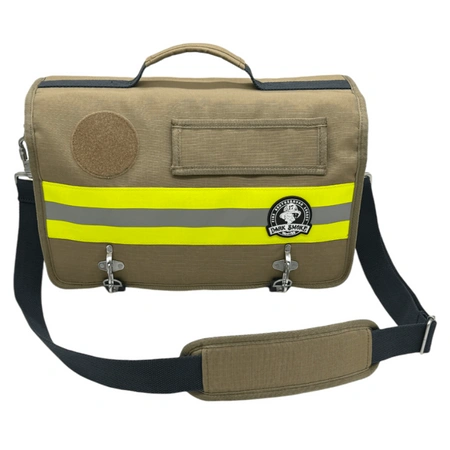 Dodatkowe zabezpieczenie stanowi trudnopalna taśma odblaskowa o szerokości 7,5 cm. Torba posiada również kieszeń, zapinaną na szeroki, metalowy zamek błyskawiczny (z tyłu) oraz miejsce, przeznaczone na butelkę, oraz uchwyt do mocowania kluczy.