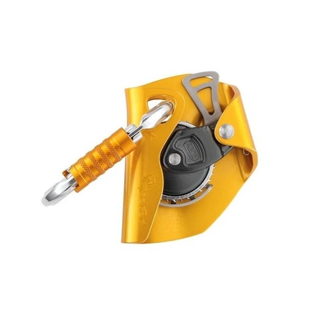- samoczynnie przesuwa się w górę i w dół liny asekuracyjnej,