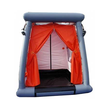 - Kabina dekontaminacyjna na stelażu pneumatycznym z tkaniny wodoodpornej z brodzikiem zintegrowanym z kabiną i systemem doprowadzania i odprowadzania wody (bez systemu prysznicowego).
