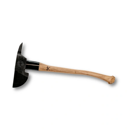Z jednej strony nieklinujące się ostrze, z drugiej - kolec na kształt kilofa, osadzone na trzonku z bardzo mocnego, wyselekcjonowanego drzewa hikorowego (orzesznik) – elastycznego, ale też bardzo twardego i odpornego na uderzenia, którego górna część została zabezpieczona opatentowanym kołnierzem, chroniącym przed skutkami niecelnego uderzenia.