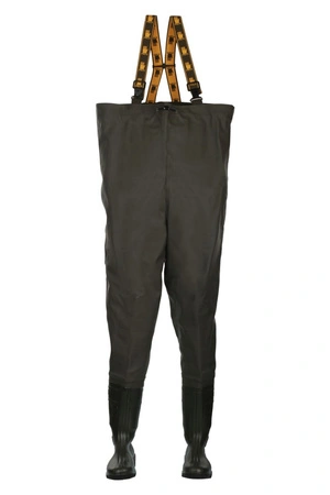 Spodniobuty wodoochronne o podwyższonej odporności na uszkodzenia mechaniczne, z wgrzanymi na stałe wysokiej jakości kaloszami. Posiadają wzmocnienia na kolanach, szelki z elastycznej, szerokiej gumy i regulację w pasie. Model produkowany z wodoochronnej, wytrzymałej tkaniny Plavitex Heavy Duty. Zapewniają skuteczną ochronę przed wodą. Technika obustronnego zgrzewania zwiększa wytrzymałość szwów.
